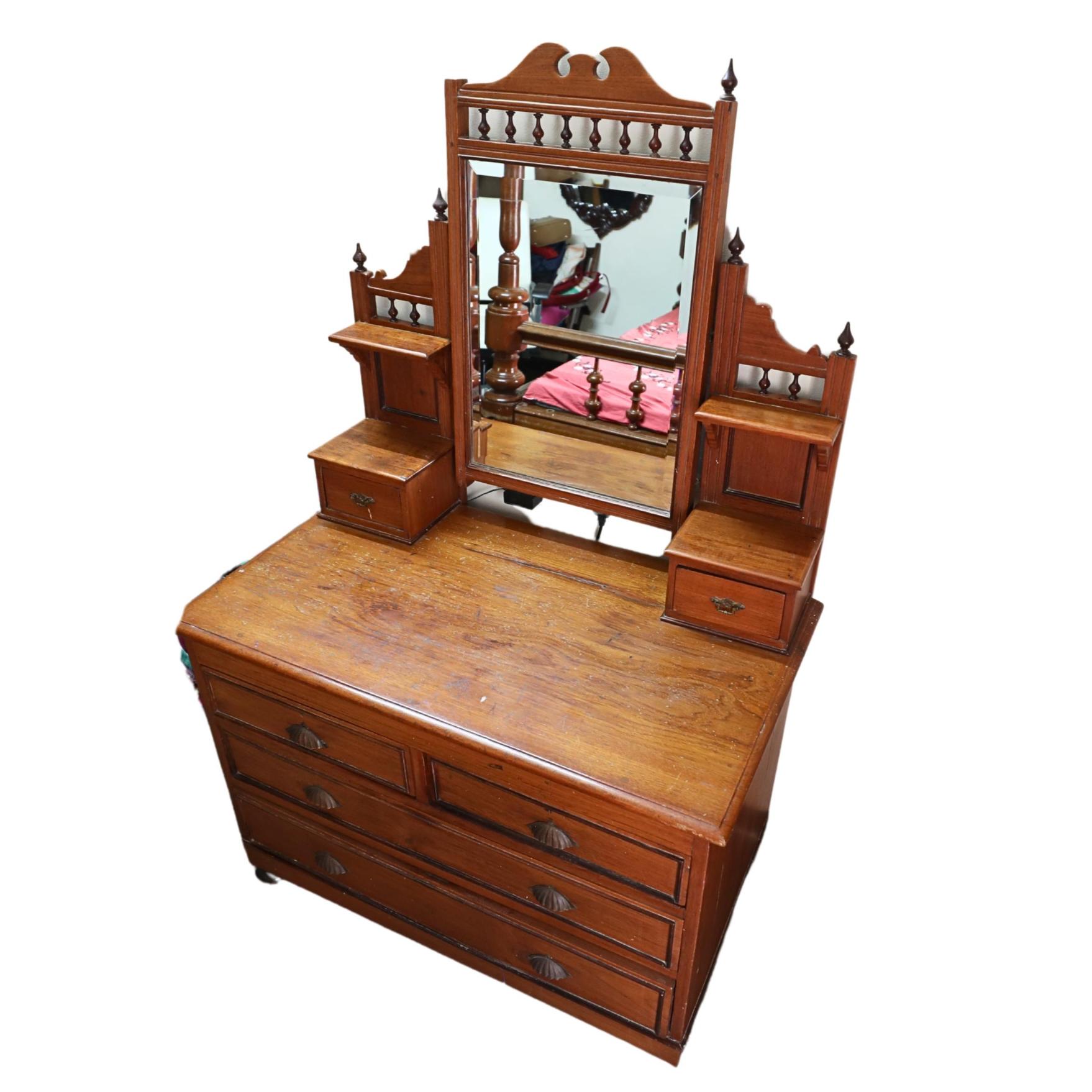 Experience the grandeur of our solid wood dressing table, featuring multiple drawers and a designer mirror. The intricate turning designs add a royal touch, making it the perfect addition to elevate the elegance of your bedroom.