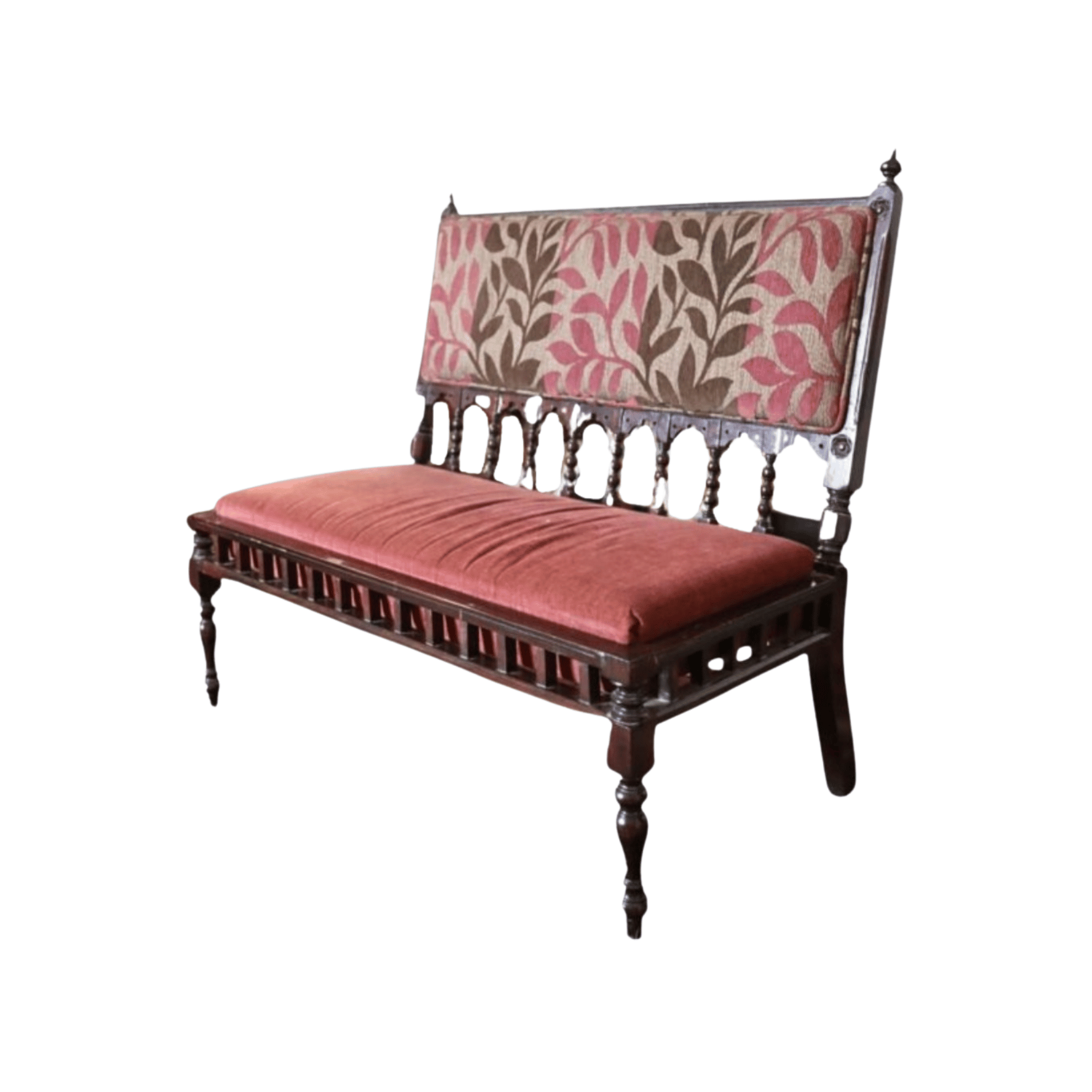 Discover the perfect blend of style and functionality with our slĂ­m, armless sofa featuring exquisite turning designs. Ideal for verandahs, entrances , or any area where space is at a premium. Create a cozy spot for quick chats or simply enhance your decor with this stunning piece.
