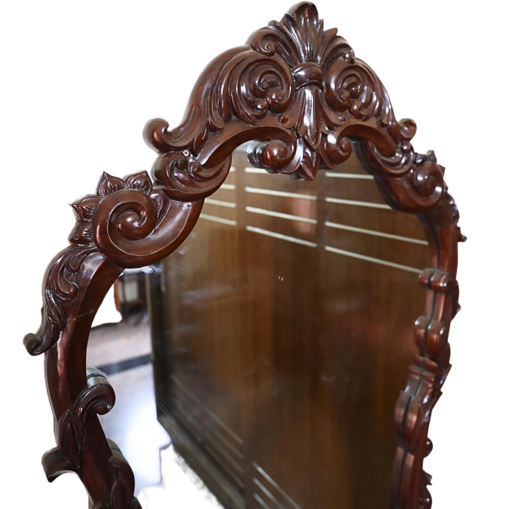 Admire your reflection in our beautiful and luxurious full- length mirror, crafted with intricate carvings from premium Teak wood or Rose wood. This elegant piece provides a complete view of yourself while adding a touch of sophistication to any room.